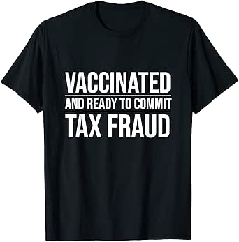 Regular price 3900 Sale price 3900 Regular price. Some shipments may take 5-10 days to print and ship due to carrier and supply chain. T-shirts bearing the phrase Vaccinated and ready to commit tax fraud have been available to buy online via Amazon since 19 July or via Redbubble since about the same time.